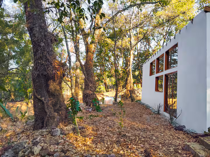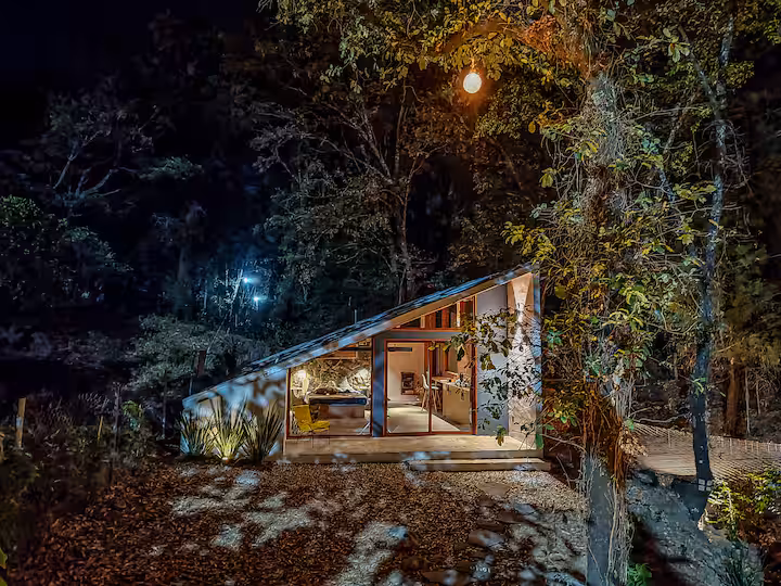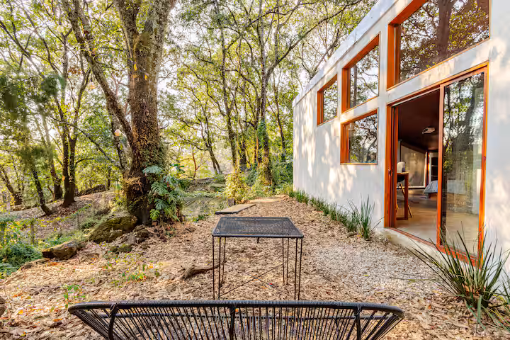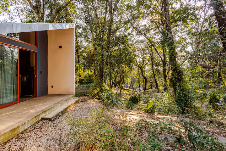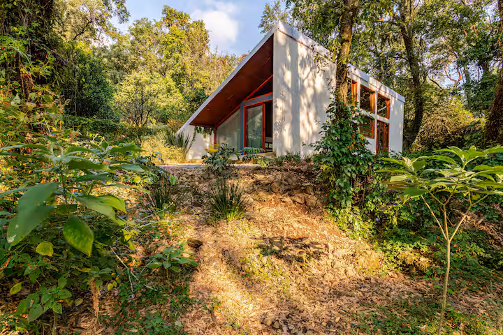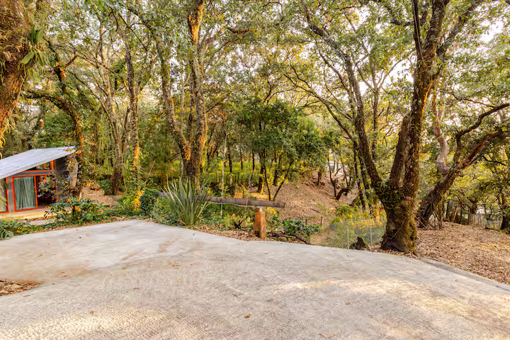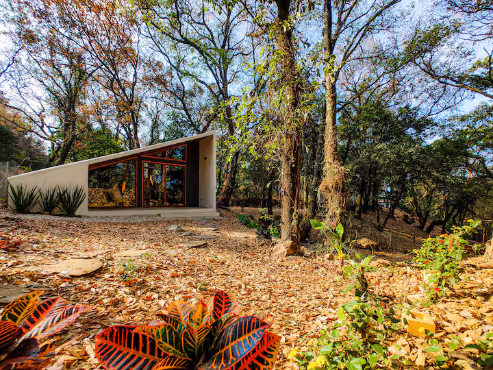 Nuestra cabaña se encuentra en la zona boscosa de Tepoztlán, Morelos. Por lo que casi todo el año encontrarás la zona verde y llena de vida.